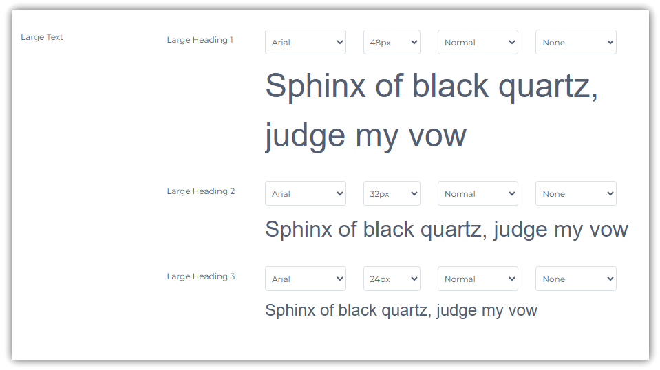In this section, you can customize various properties of the text style for your portal, including the heading style, font family, size, and other relevant attributes.