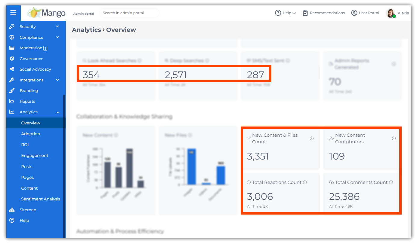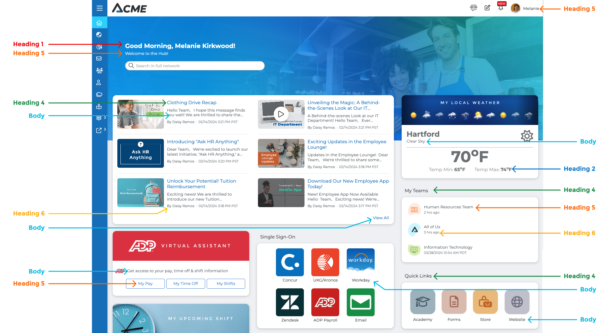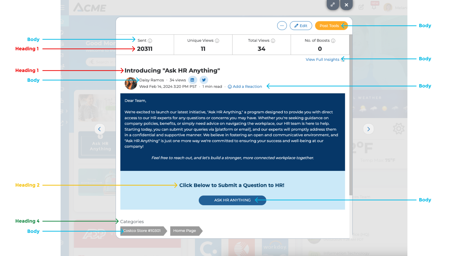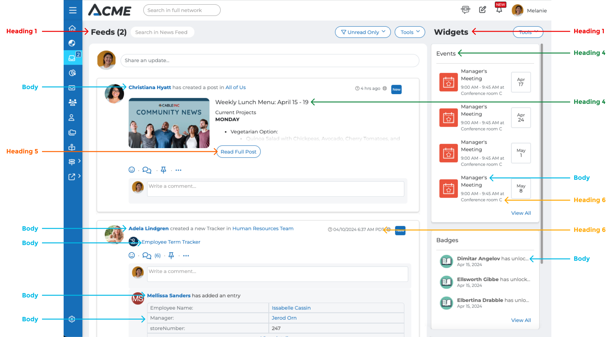 To improve **visual hierarchy and consistency** across the portal, MangoApps also features standardized **large heading sizes (Large H1, H2, and H3)**. These large headings are automatically applied in **analytics dashboards**.