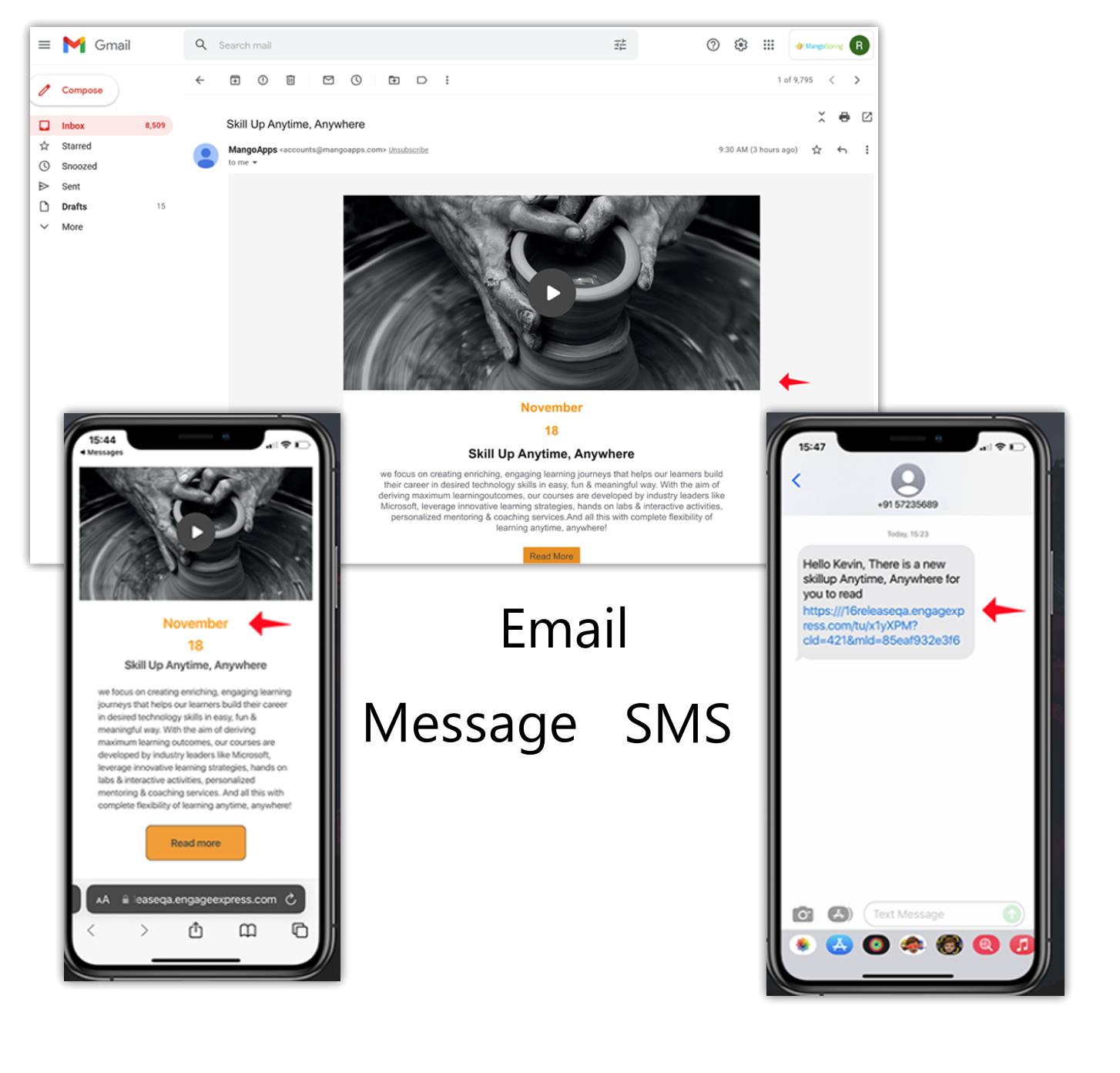 App installation is not required to access campaign messages. Users can read the entire campaign message via email or SMS without the need for the MangoApps mobile app or web login.