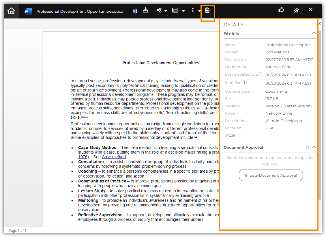 * [**Initiate Approval Workflow**](https://guides.mangoapps.com/user-guide/files/file-level-actions/approval-workflow-for-files)**:** Seek timely approvals from designated users before finalizing changes, streamlining collaborative processes and ensuring compliance.