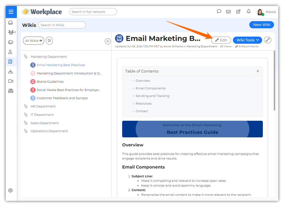 Click the Edit button for a wiki to open it in Edit Mode.