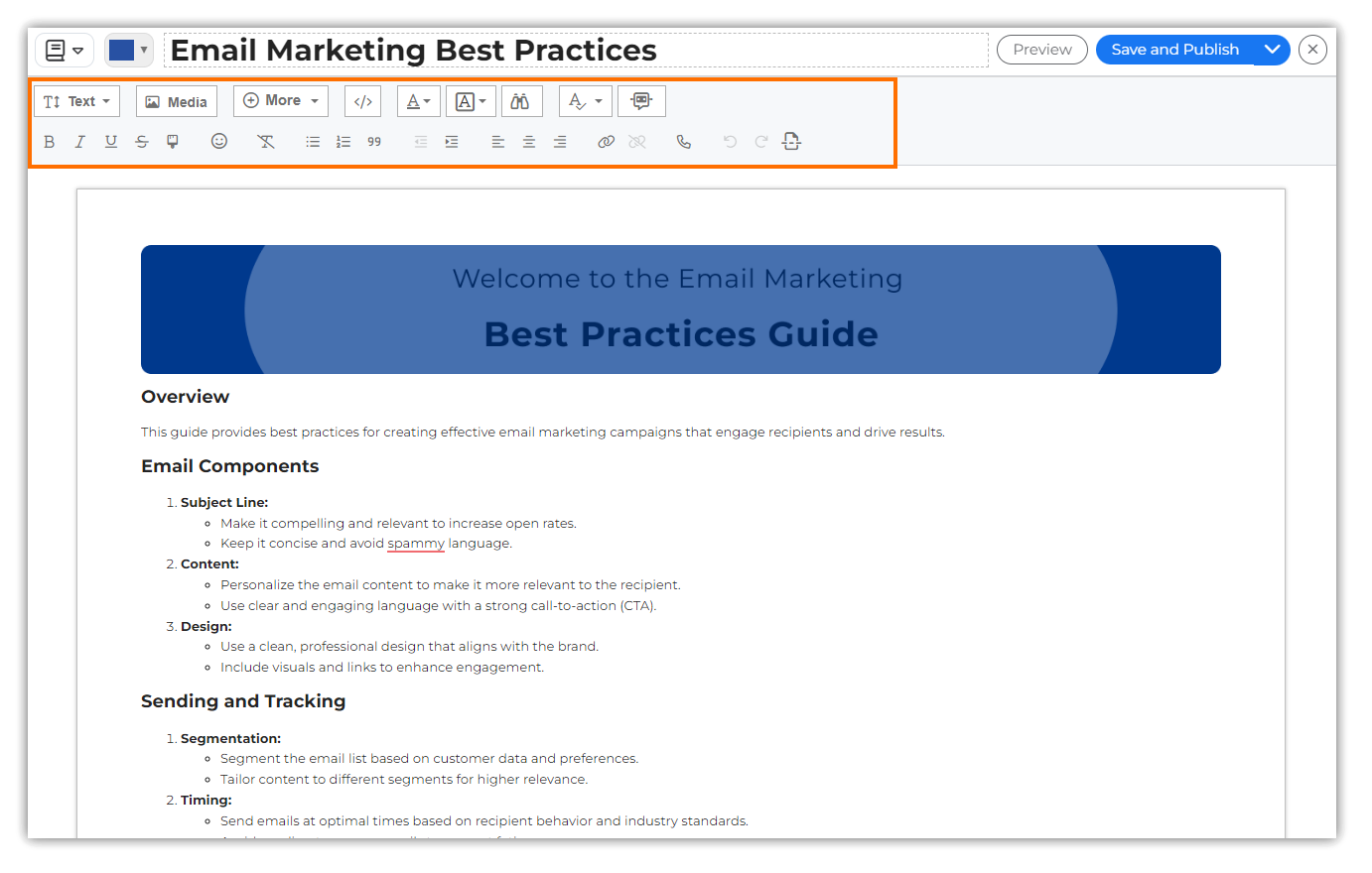 Use the toolbar within the text editor to add/edit/style/delete content in the wiki.
